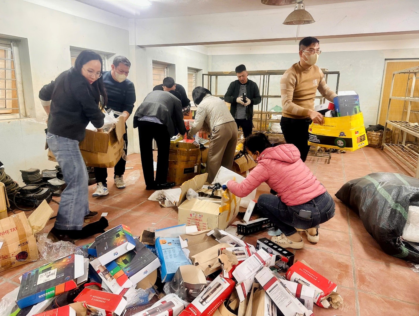 Hàng hóa từ các Đội QLTT tập hợp tại kho tang vật của Chi cục để thực hiện tiêu hủy